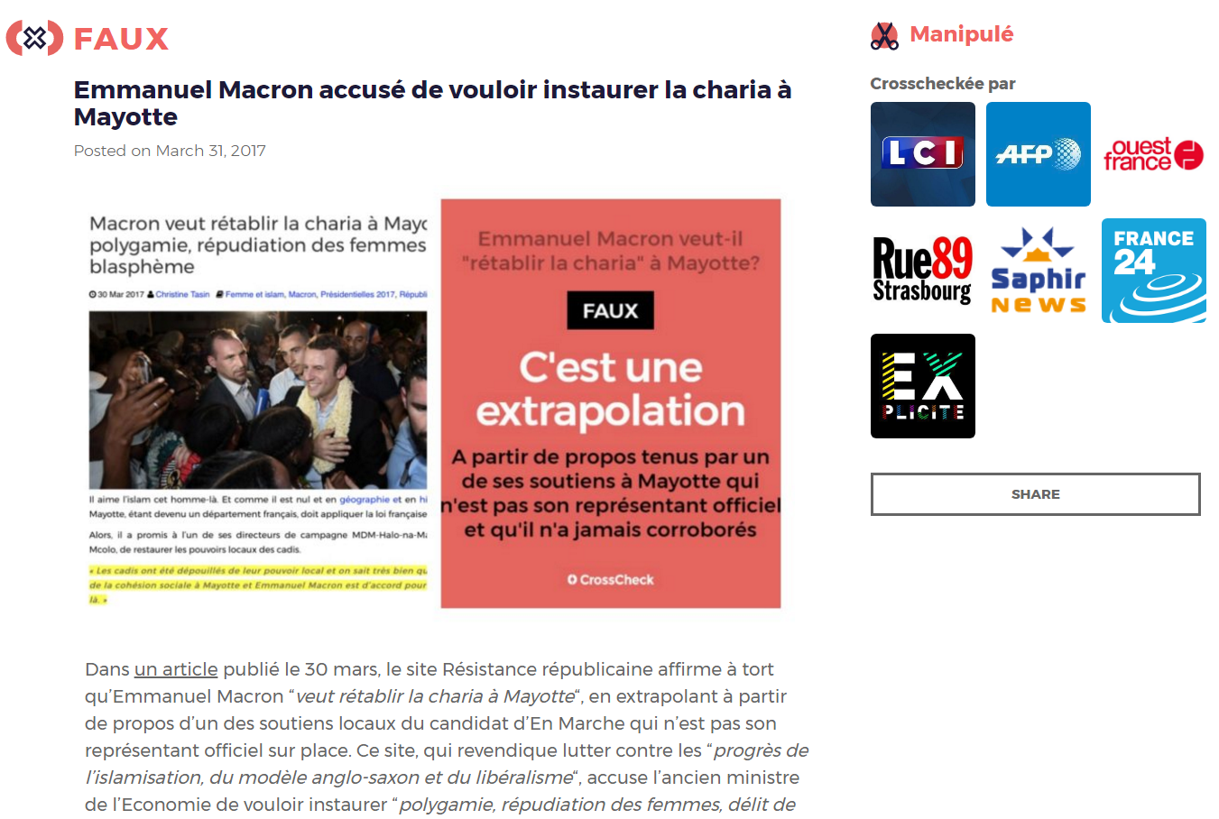 The most popular CrossCheck during the French elections, based on website page views.